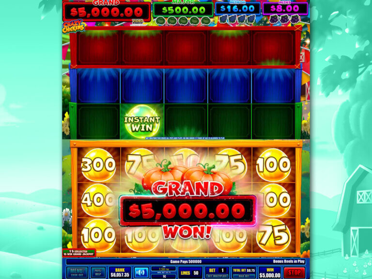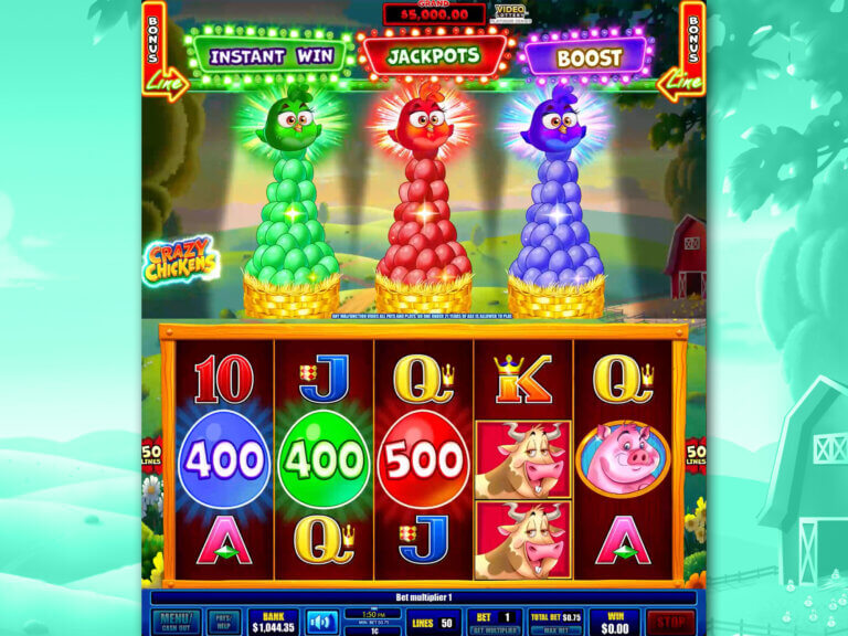Hatch surprises and help the three little chickies come home to roost in this wild farm-frenzy game. With five reels, 50 paylines, and a top single spin award of $5,000, Crazy Chickens is a full-blown poultry party! Loaded with features, there are so many possibilities to Instant Win with a green egg, Multiply with a “blurple” egg, or Jackpot with a red egg. With just a $0.75 minimum wager, these quirky chickens will whip into a feathered frenzy, spinning through the barnyard and towards the top prize. Find it at your favorite Oregon Lottery retailer!